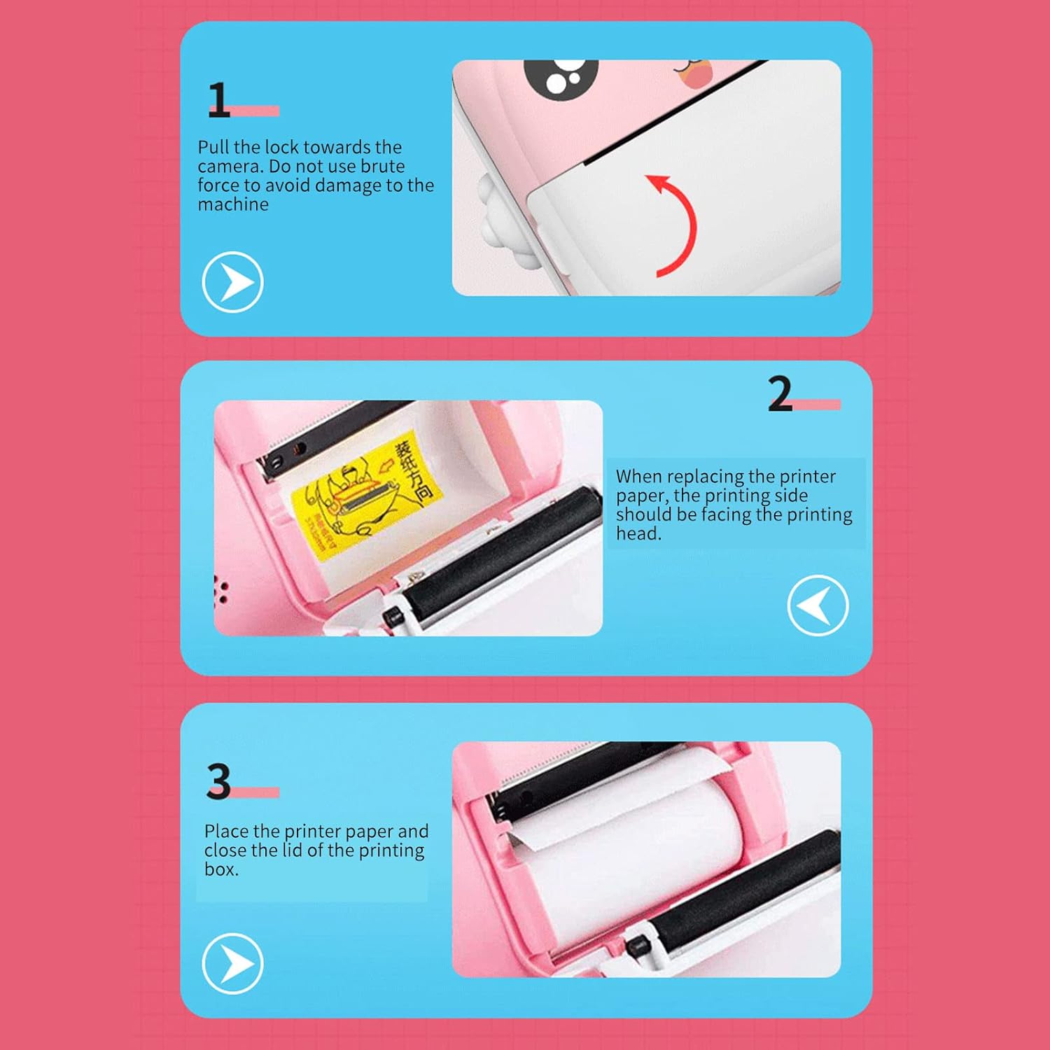 📸 Fotos y videos en alta calidad: captura imágenes en 24MP y videos en Full HD 1080P. La cámara incluye función de impresión instantánea (blanco/negro), para que los niños puedan imprimir sus fotos y decorarlas con acuarela o marcadores, fomentando la creatividad y el arte.