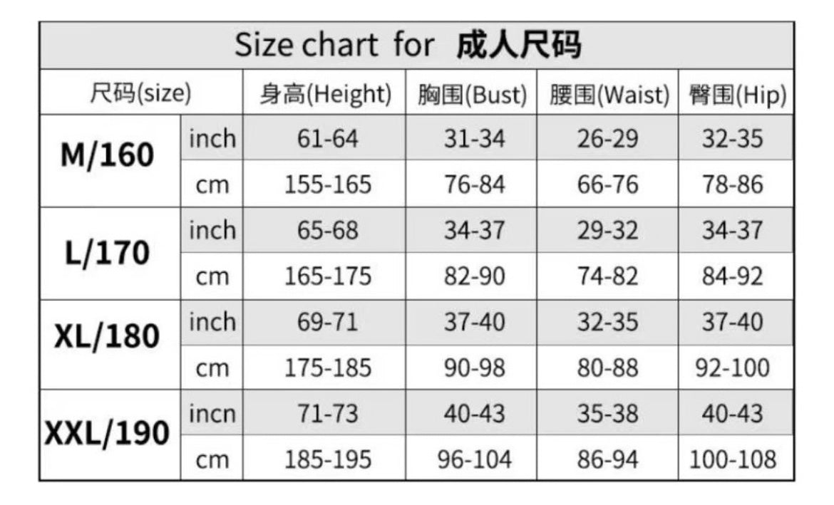 Leer tabla de tallas. Ideal para una persona de estatura 1.85cm a 1.95cm