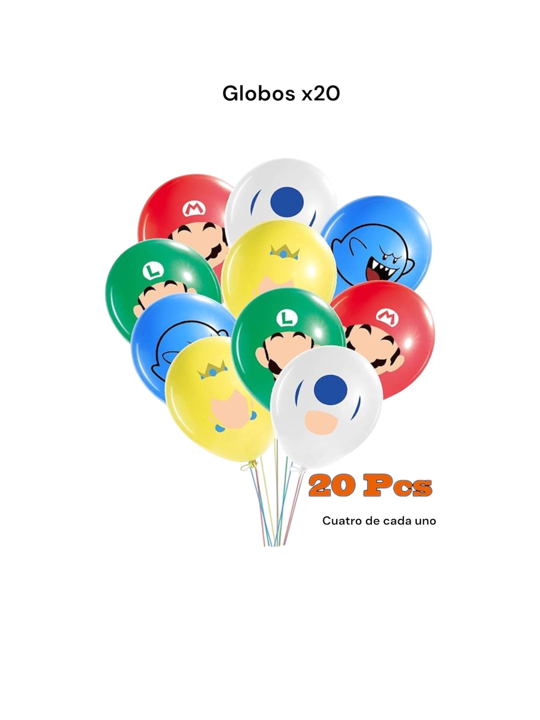 - 20 globos látex colores personajes Marios Bros